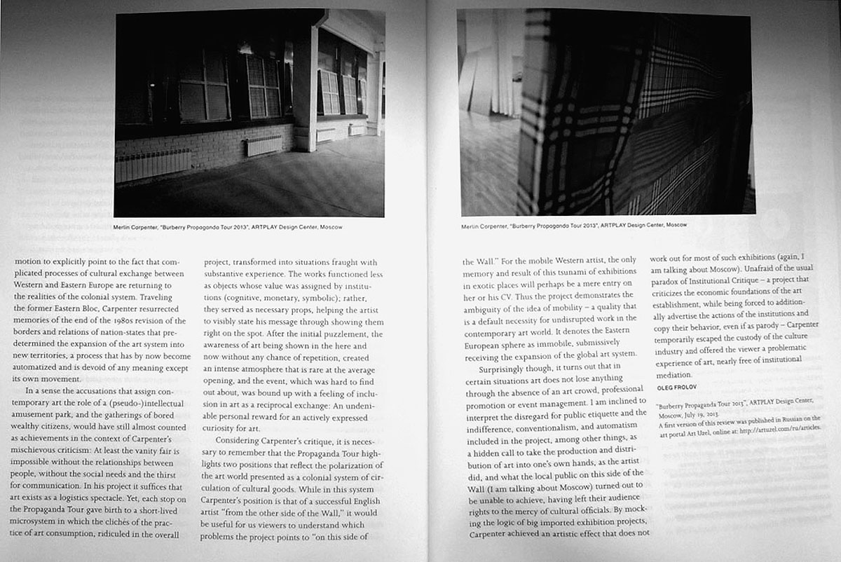 TEXTE ZUR KUNST, No. 92. DECEMBER 2013, p, 223. OLEG FROLOV ON THE BURBERRY PROPAGANDA TOUR 2013