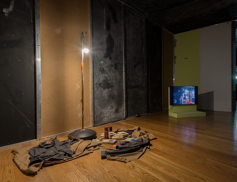 A display of surviving elements from the 2013 Merlin Carpenter exhibition "Support nightclub experience Nightclub" at A Certain Lack of Coherence in Porto, shown together with the video "Yeah!!" which A Certain Lack of Coherence made about that show.