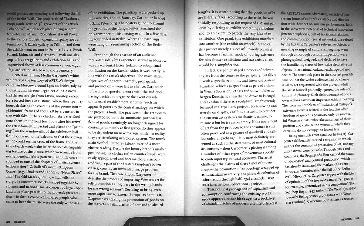 TEXTE ZUR KUNST, No. 92. DECEMBER 2013, p, 223. OLEG FROLOV ON THE BURBERRY PROPAGANDA TOUR 2013
