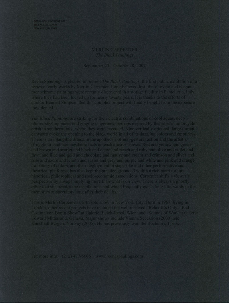 OCTOBER 2007. Opening 23rd SEPTEMBER